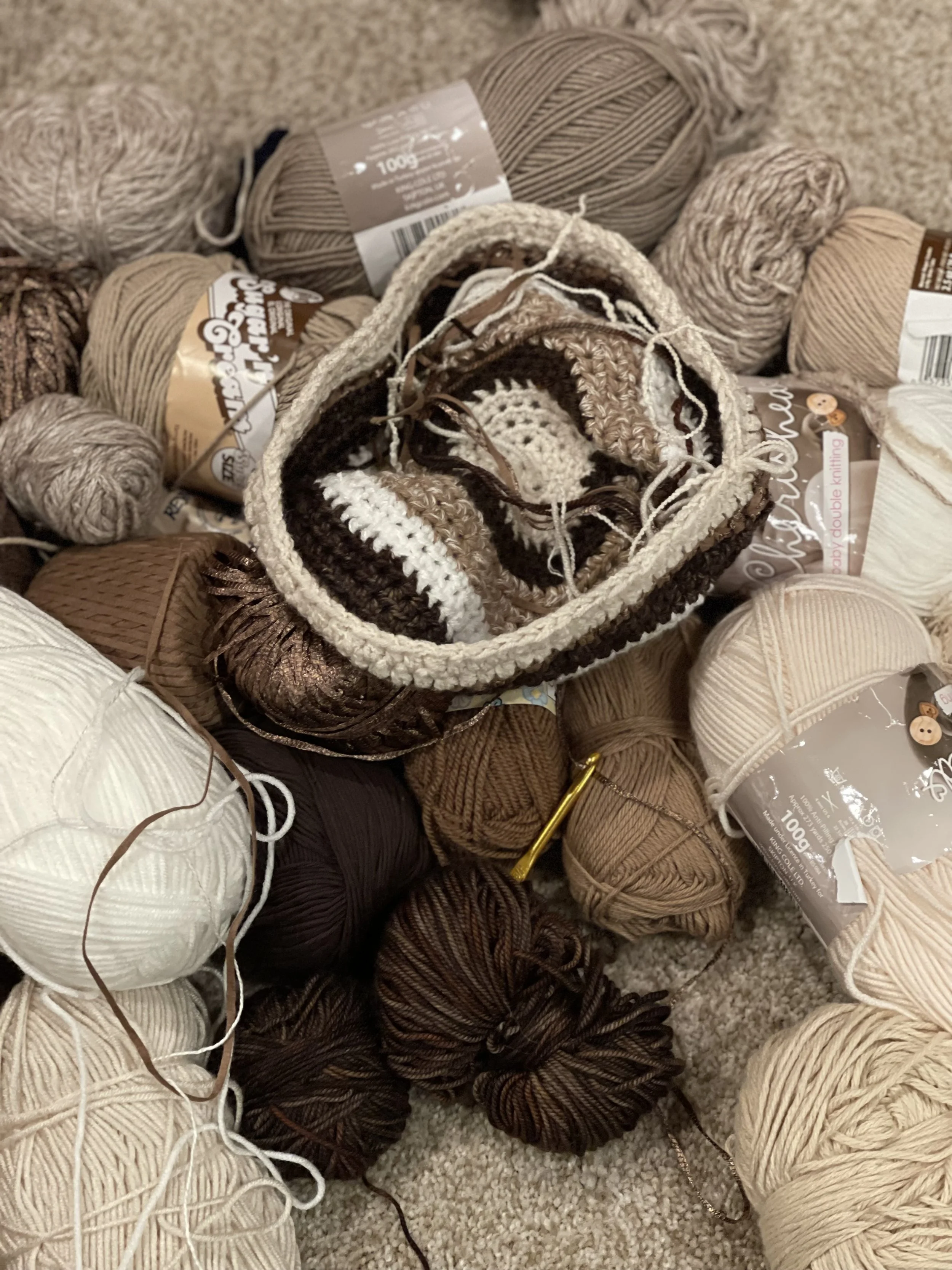 My friend Ita gave me a bunch of beige, brown, and ivory yarn that she inherited from an auntie, so I made her a hat for her birthday!