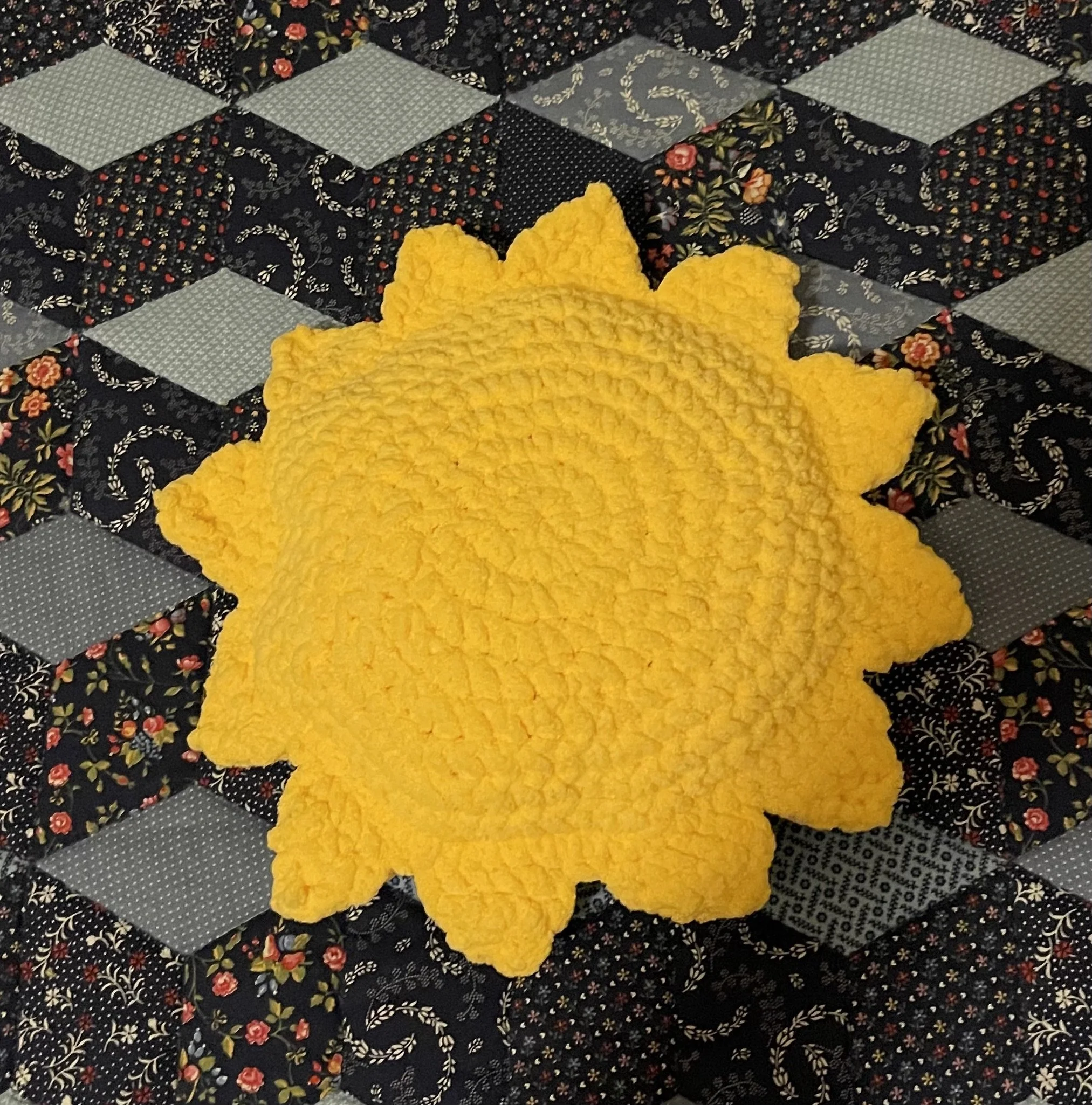 Crocheted chenille pillow for Sarah’s baby
